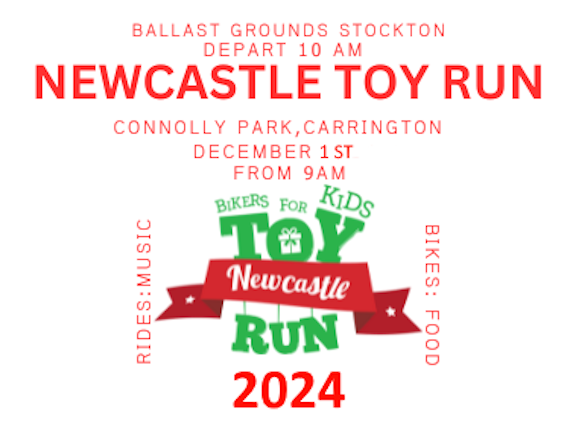 The Newcastle Toy Run begins at Ballast Park in Stockton at 10am sharp, and finishes at Connolly Park, with live music, merchandise for purchase, food, drinks and even more fun!