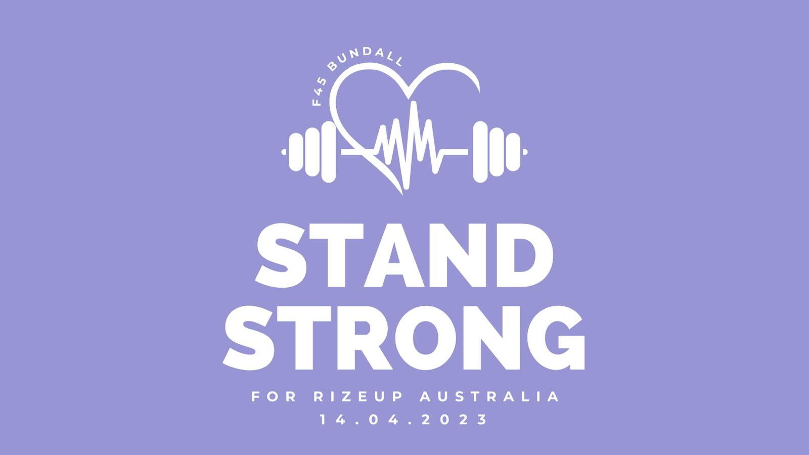 Thanks for visiting my Fundraising page for F45 Bundall Stand Strong with 12 classes in 1 day! On Friday 14th April 2023, a team of members and coaches at F45 Bundall will be completing 12 x 45 minute F45 classes in 1 day! You can sponsor us and leave a message by clicking on the donate button. Every dollar counts!
