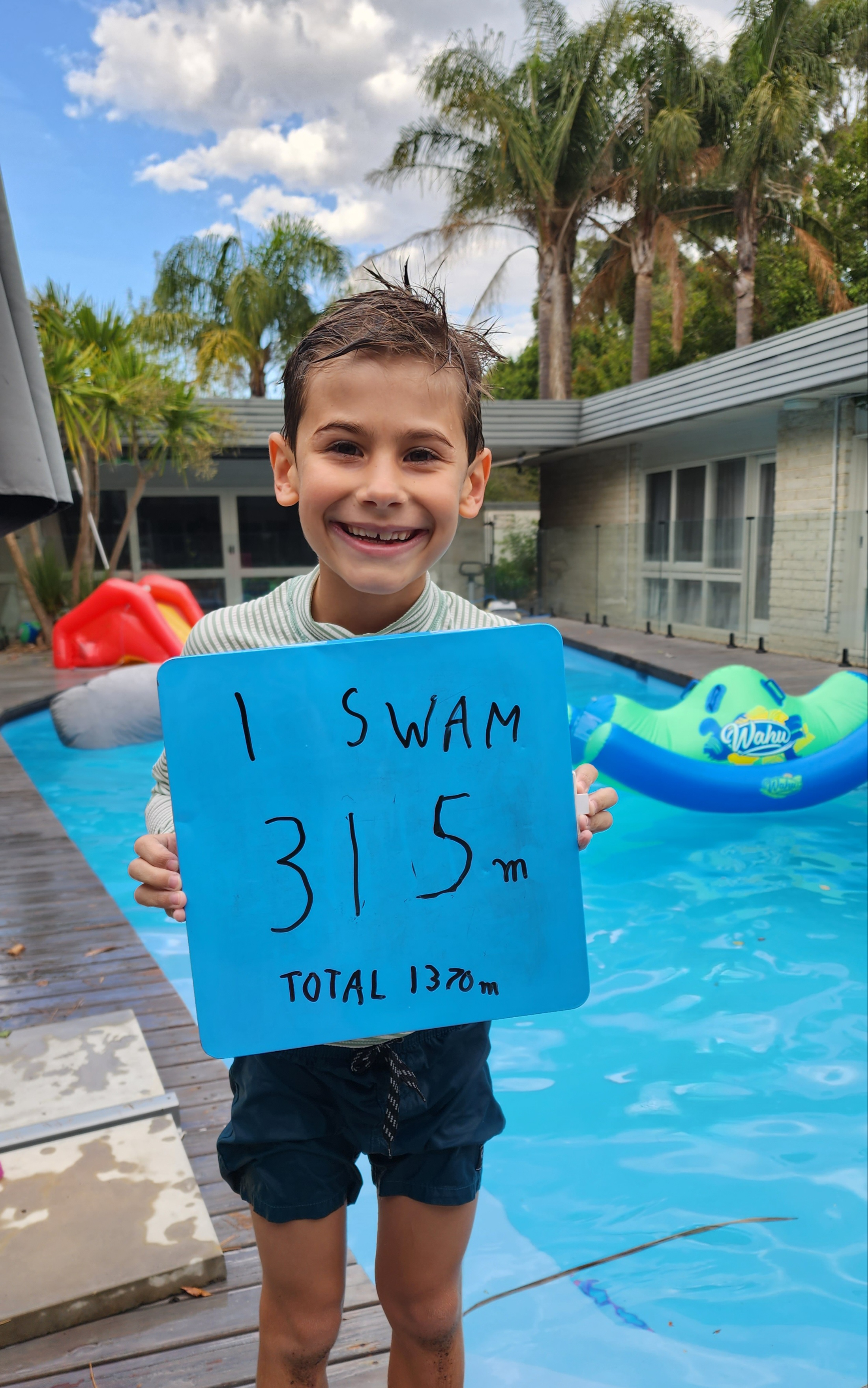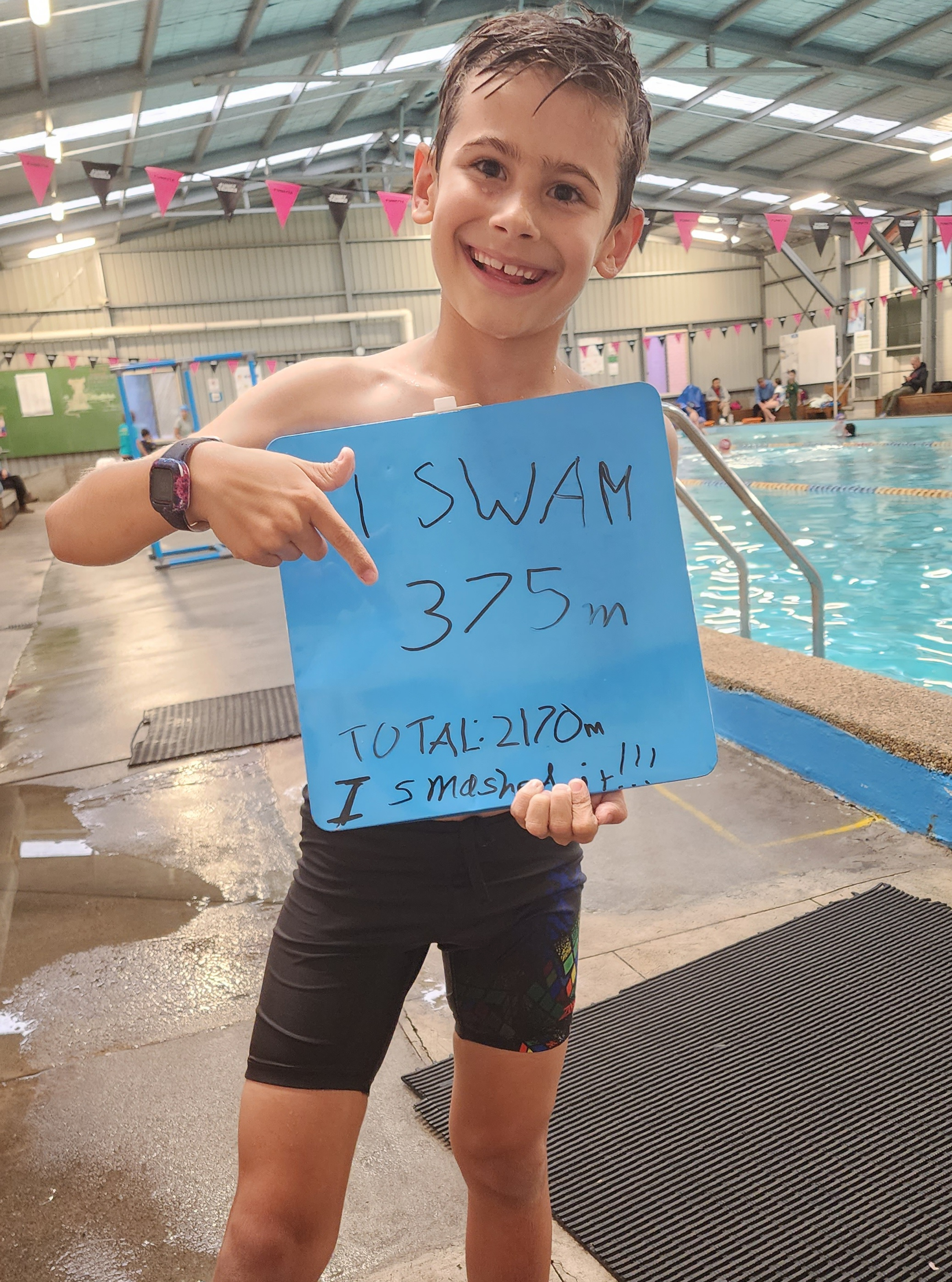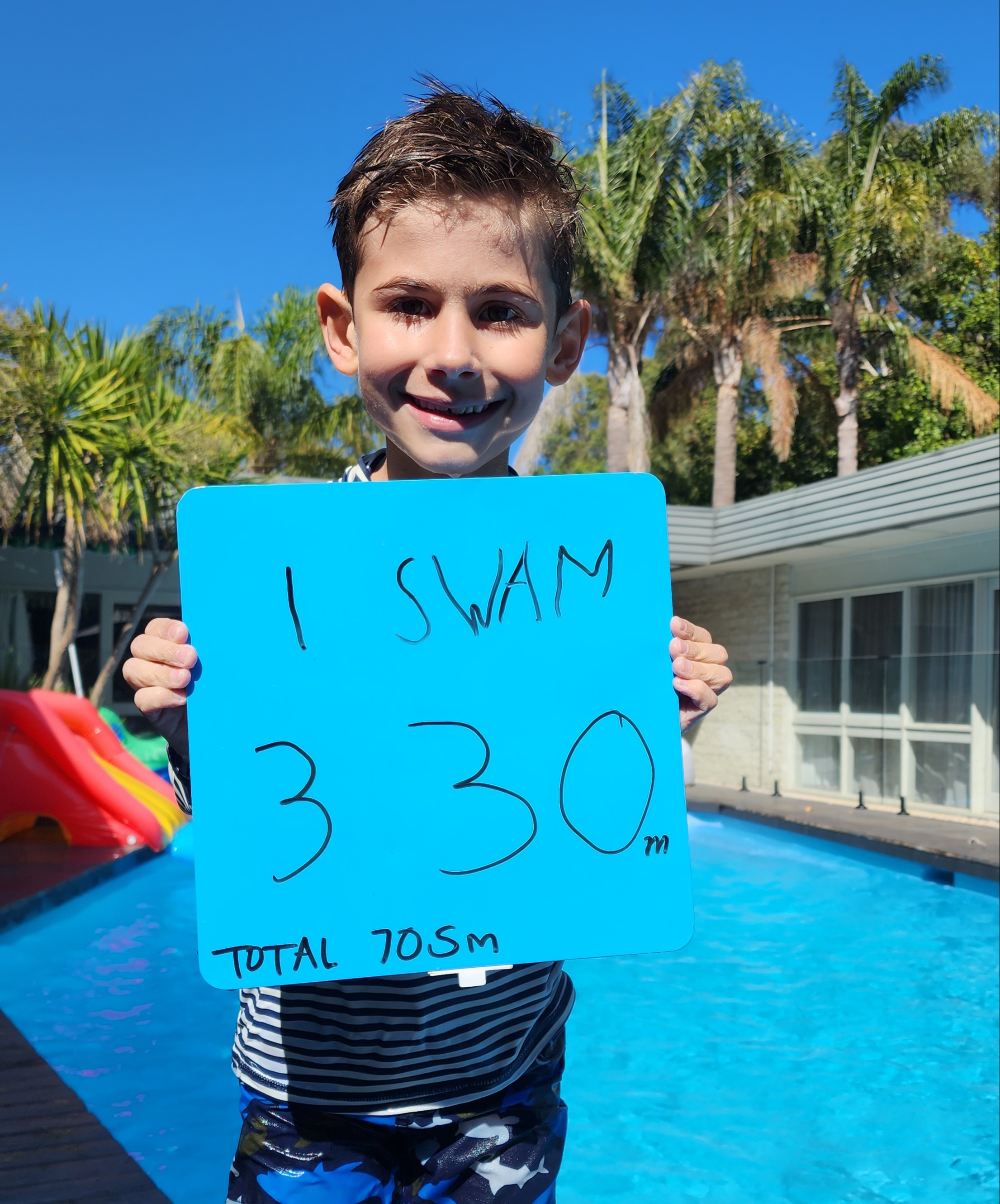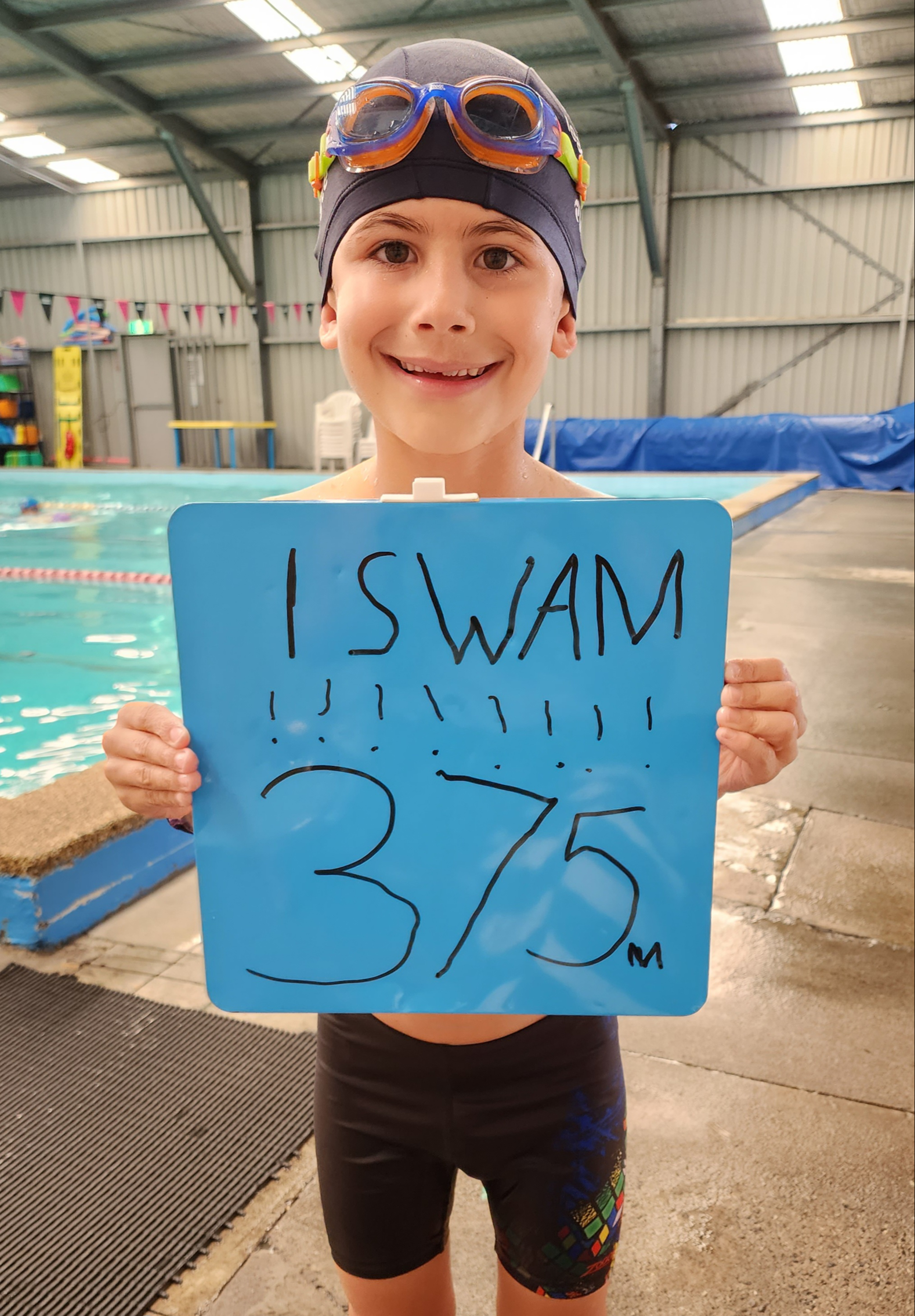My goal is to swim 1 kilometre in one month to raise enough money to buy 50 custom swim caps to be used at future swimming carnivals so we can proudly represent the school and cheer on our school mates!